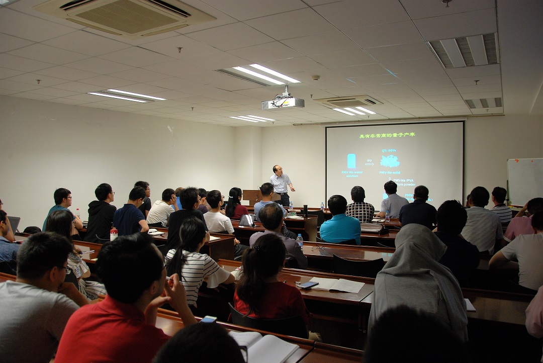 乔教授的报告十分精彩,信息量很大,从产业化到基础研究再到产业化,均展示着高分子材料的魅力。他提出的“为中国乃至人类的发展做贡献”的目标将鼓舞高分子人为高分子材料的发展不懈地努力。报告之后,乔教授和师生们进行了热烈的讨论。此次报告由化工系高分子所所长郭宝华教授主持并授予纪念牌,系内外50余名师生参加。