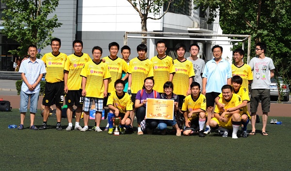 2012年6月11日上午,在紫荆操场上进行了2012年化工系研究生足球联赛决赛。经过激烈拼搏,由我中心和系统所的同学组成的研五班足球队最终战胜研六班足球队获得冠军。中心多名成员作为球员和啦啦队参加了此次比赛,其中,我中心主任胡山鹰教授作为主力队员打满全场并分别有进球和助攻。值得一提的是,这已经是研五班在四年的化工系研究生足球联赛中获得的第三次冠军。系主任助理赵劲松教授也观看了比赛并为本届足球联赛冠军颁发了奖状和奖品。